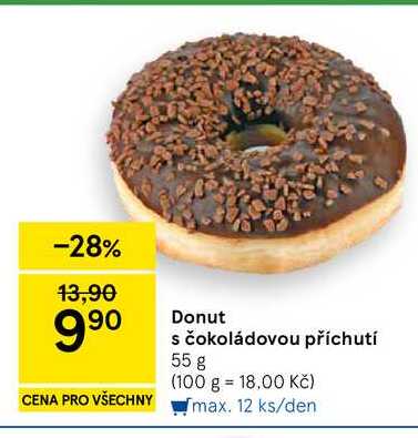 Aktuální slevu na Donut s čokoládovou příchutí, 55 g zjistíte jednoduše nastavením Strážce slev .