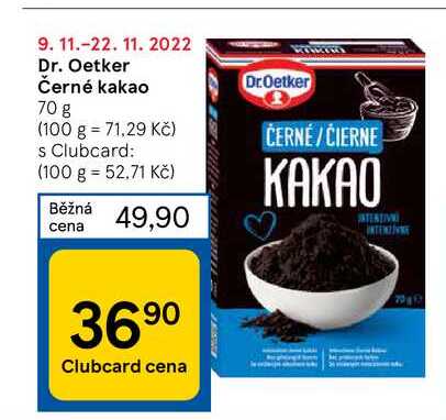 Aktuální slevu na Dr. Oetker Černé kakao 70 g zjistíte jednoduše nastavením Strážce slev .