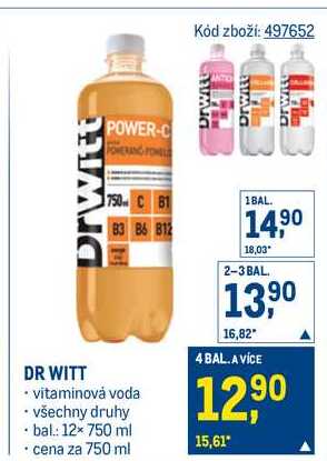 DR WITT vitaminová voda všechny druhy bal 12× 750 ml cena za 750 ml