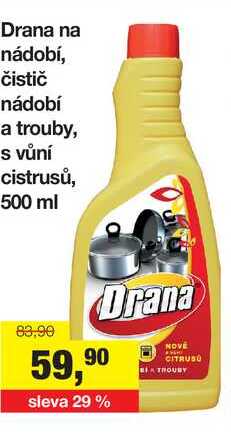 Aktuální slevu na Drana na nádobí, čistič nádobí a trouby, s vůní cistrusů, 500 ml zjistíte jednoduše nastavením Strážce slev .