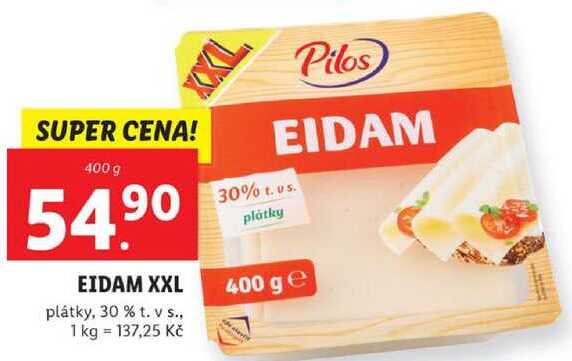 EIDAM XXL plátky, 30 % t. v s., 400 g