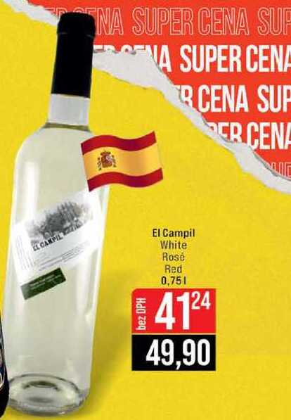 Aktuální slevu na El Campil White Rosé Red 0,75l zjistíte jednoduše nastavením Strážce slev .