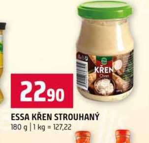 Aktuální slevu na ESSA KŘEN STROUHANÝ 180 g zjistíte jednoduše nastavením Strážce slev .