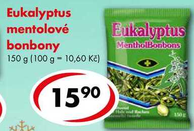 Aktuální slevu na Eukalyptus mentolové bonbony, 150 g zjistíte jednoduše nastavením Strážce slev .