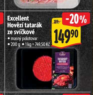Aktuální slevu na Excellent Hovězí tatarák ze svíčkové 200 g zjistíte jednoduše nastavením Strážce slev .