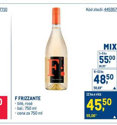 Aktuální slevu na F FRIZZANTE bilé, rosé 750 ml zjistíte jednoduše nastavením Strážce slev .