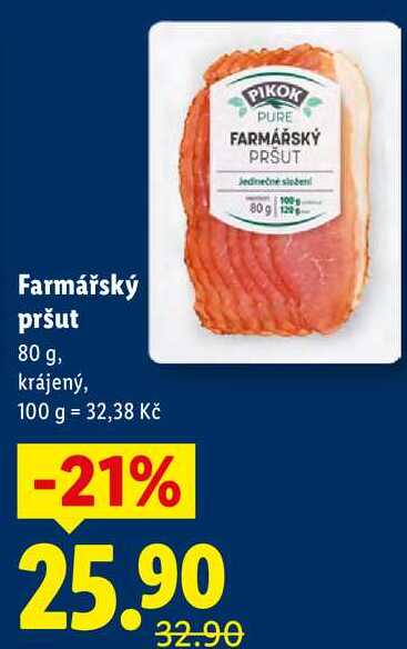 Aktuální slevu na Farmářský pršut, 80 g zjistíte jednoduše nastavením Strážce slev .
