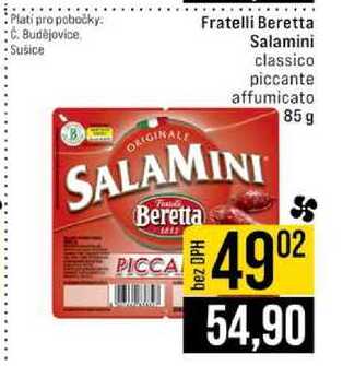 Aktuální slevu na Fratelli Beretta Salamini classico piccante affumicato 85g zjistíte jednoduše nastavením Strážce slev .