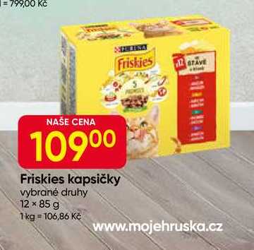 Aktuální slevu na Friskies kapsičky pro kočky vybrané druhy 12 × 85 g zjistíte jednoduše nastavením Strážce slev .