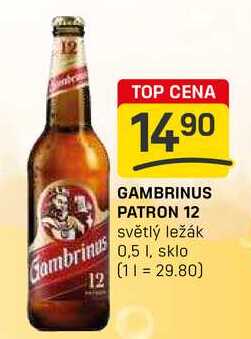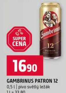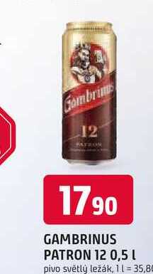 Aktuální slevu na Gambrinus Patron 12, 0,5 l zjistíte jednoduše nastavením Strážce slev .