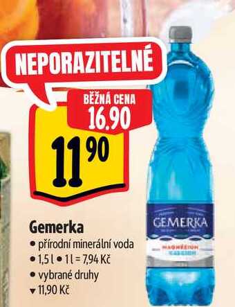 Aktuální slevu na Gemerka přírodní minerální voda 1,5l vybrané druhy zjistíte jednoduše nastavením Strážce slev .