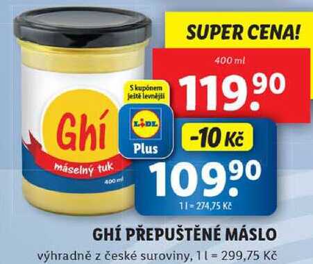 Aktuální slevu na GHÍ PŘEPUŠTĚNÉ MÁSLO, 400 ml zjistíte jednoduše nastavením Strážce slev .