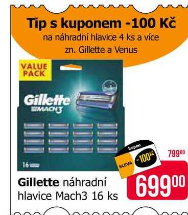 Aktuální slevu na Gillette Mach3 Turbo Náhradní hlavice k pánskému holicímu strojku 16 ks zjistíte jednoduše nastavením Strážce slev .