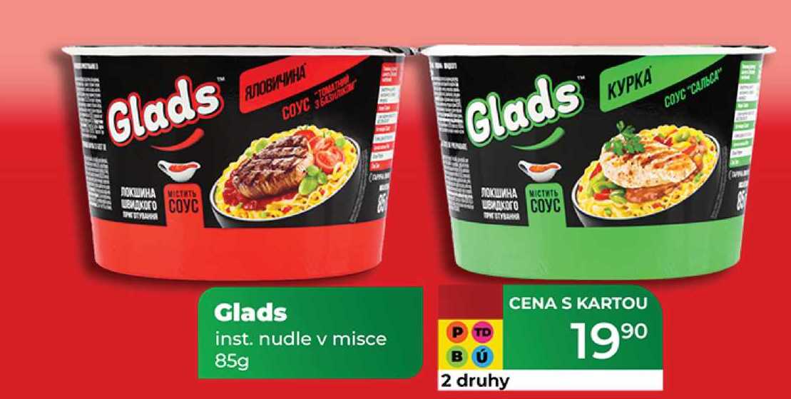 Aktuální slevu na Glads inst. nudle v misce 85g zjistíte jednoduše nastavením Strážce slev .