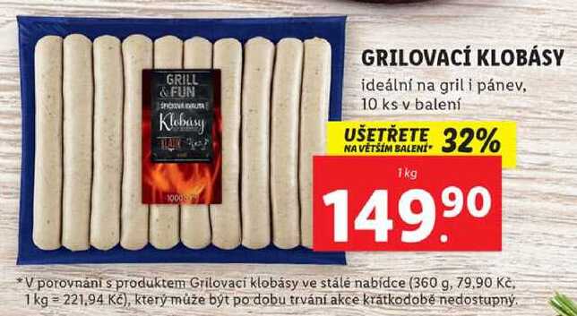 Aktuální slevu na GRILOVACÍ KLOBÁSY, 1 kg zjistíte jednoduše nastavením Strážce slev .
