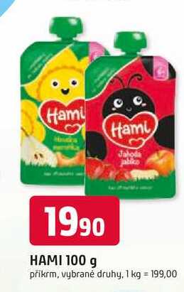 Aktuální slevu na HAMI 100 g příkrm, vybrané druhy zjistíte jednoduše nastavením Strážce slev .