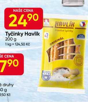 Aktuální slevu na Havlík trvanlivé tyčinky 200g, vybrané druhy zjistíte jednoduše nastavením Strážce slev .