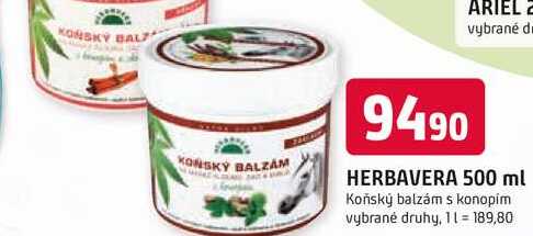 Aktuální slevu na HERBAVERA 500 ml Koňský balzám s konopím zjistíte jednoduše nastavením Strážce slev .