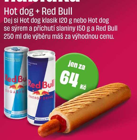 Aktuální slevu na Hot dog 150g + Red Bull 250 ml zjistíte jednoduše nastavením Strážce slev .