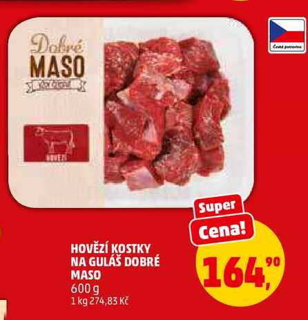 Aktuální slevu na HOVĚZÍ KOSTKY NA GULÁŠ DOBRÉ MASO, 600 g zjistíte jednoduše nastavením Strážce slev .