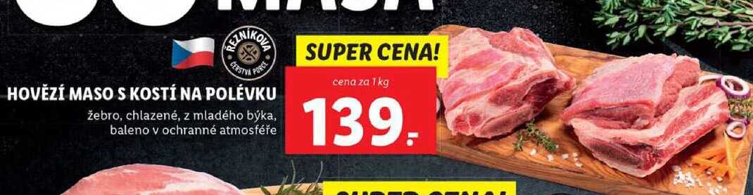 Aktuální slevu na HOVĚZÍ MASO S KOSTÍ NA POLÉVKU, cena za 1 kg zjistíte jednoduše nastavením Strážce slev .