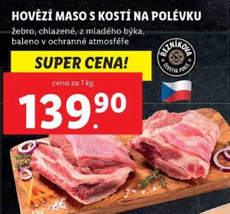 Aktuální slevu na HOVĚZÍ MASO S KOSTÍ NA POLÉVKU, cena za 1 kg zjistíte jednoduše nastavením Strážce slev .