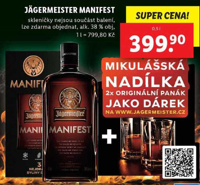 Aktuální slevu na JÄGERMEISTER MANIFEST, 0,5 l zjistíte jednoduše nastavením Strážce slev .