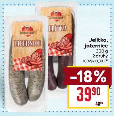 Aktuální slevu na Jelitka, jaternice 300 g zjistíte jednoduše nastavením Strážce slev .
