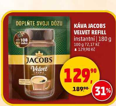 Aktuální slevu na KÁVA JACOBS VELVET REFILL instantní, 180 g zjistíte jednoduše nastavením Strážce slev .
