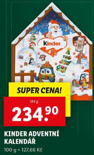 Aktuální slevu na KINDER ADVENTNÍ KALENDÁŘ, 184 g zjistíte jednoduše nastavením Strážce slev .