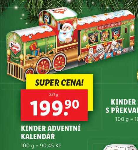 Aktuální slevu na KINDER ADVENTNÍ KALENDÁŘ, 221 g zjistíte jednoduše nastavením Strážce slev .