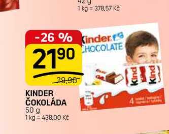 Aktuální slevu na KINDER ČOKOLÁDA 50 g zjistíte jednoduše nastavením Strážce slev .