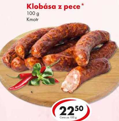 Aktuální slevu na Klobása z pece, 100 g zjistíte jednoduše nastavením Strážce slev .