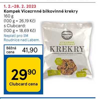 Aktuální slevu na Kompek Vícezrnné bílkovinné krekry 160 g zjistíte jednoduše nastavením Strážce slev .