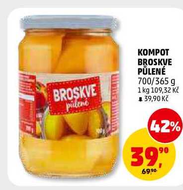 Aktuální slevu na KOMPOT BROSKVE PŮLENÉ, 700 g zjistíte jednoduše nastavením Strážce slev .