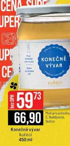 Aktuální slevu na Konečně vývar kuřecí 450 ml zjistíte jednoduše nastavením Strážce slev .