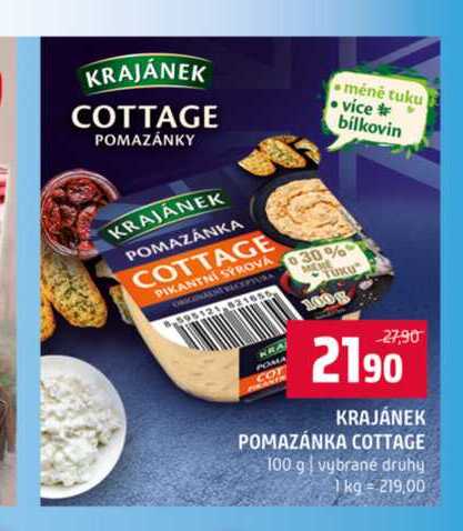 Aktuální slevu na KRAJÁNEK POMAZÁNKA COTTAGE 100 g vybrané druhy zjistíte jednoduše nastavením Strážce slev .