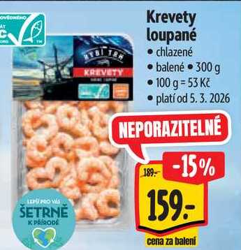 Aktuální slevu na Krevety loupané, 300 g zjistíte jednoduše nastavením Strážce slev .