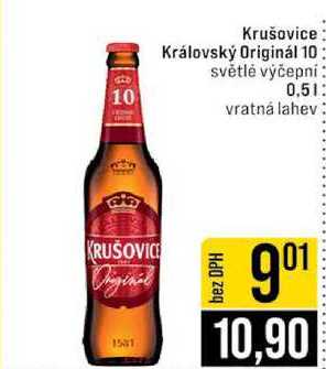 Aktuální slevu na Krušovice Královský Originál 10 světlé výčepní 0,5l zjistíte jednoduše nastavením Strážce slev .