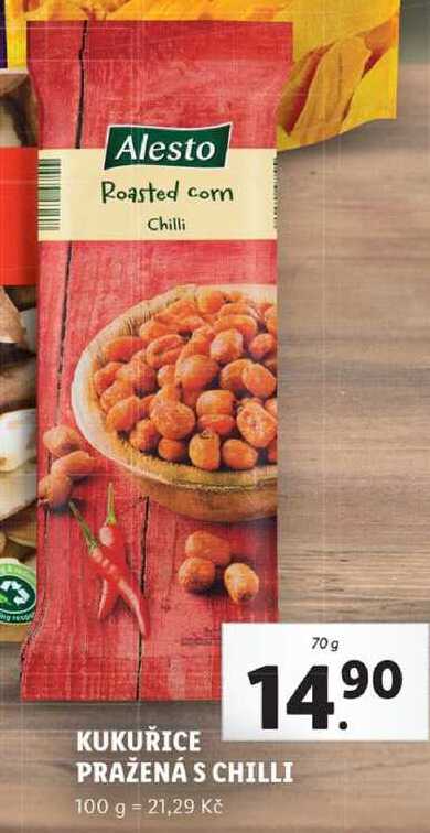 Aktuální slevu na KUKUŘICE PRAŽENÁ S CHILLI, 70 g zjistíte jednoduše nastavením Strážce slev .