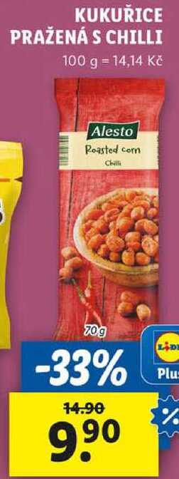 Aktuální slevu na KUKUŘICE PRAŽENÁ S CHILLI, 70 g zjistíte jednoduše nastavením Strážce slev .