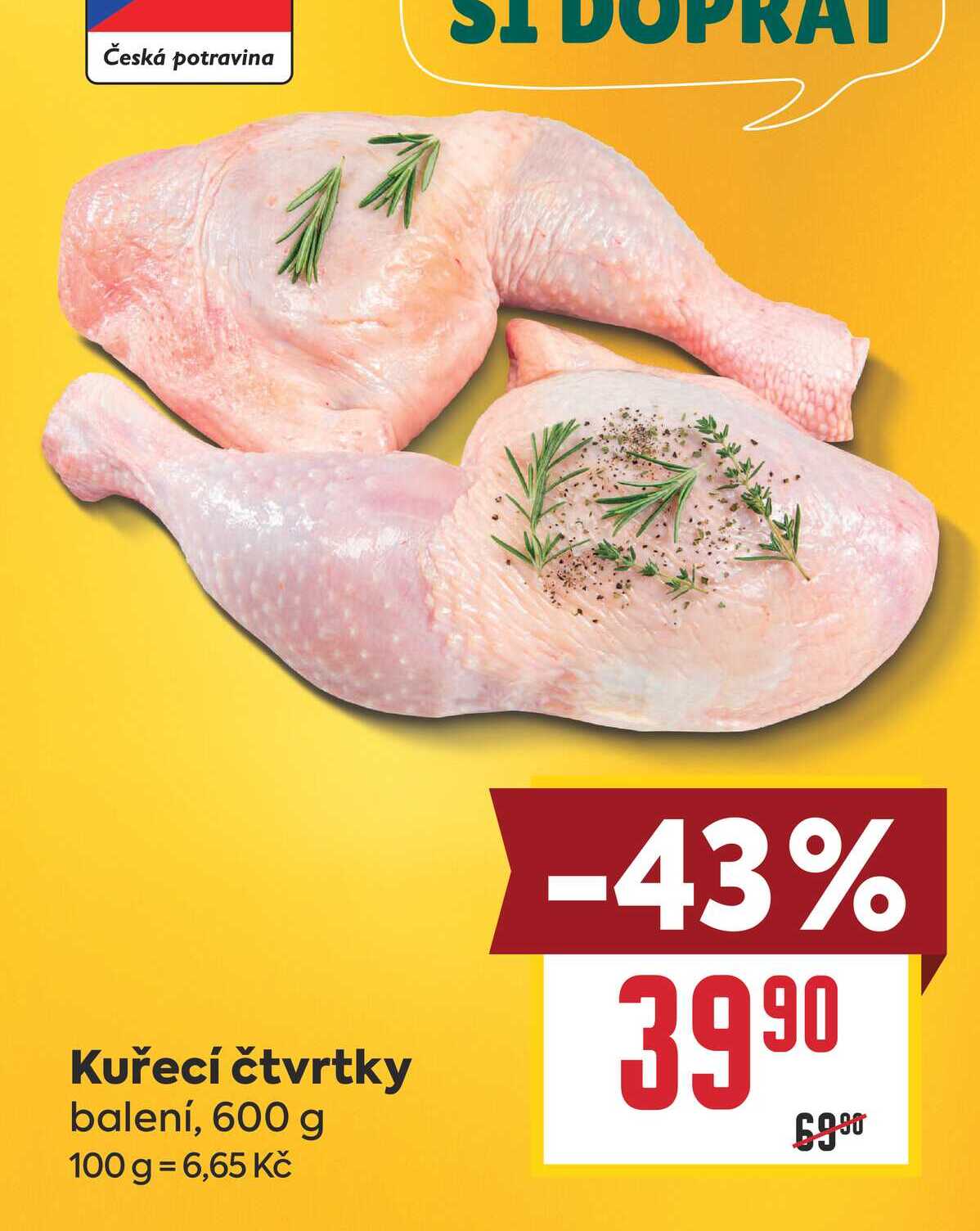 Aktuální slevu na Kuřecí čtvrtky balení, 600 g zjistíte jednoduše nastavením Strážce slev .