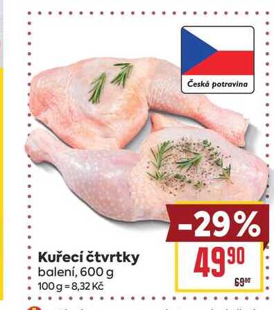 Aktuální slevu na Kuřecí čtvrtky balení, 600 g zjistíte jednoduše nastavením Strážce slev .