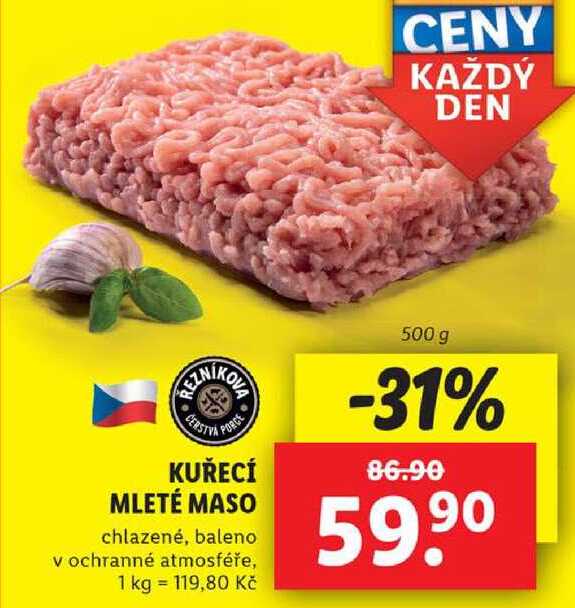 Aktuální slevu na KUŘECÍ MLETÉ MASO, 500 g zjistíte jednoduše nastavením Strážce slev .