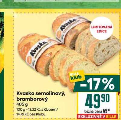 Aktuální slevu na Kvasko semolinový, bramborový 405 g zjistíte jednoduše nastavením Strážce slev .