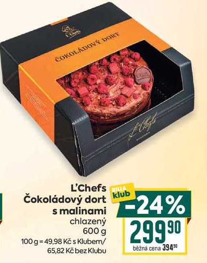 Aktuální slevu na L'Chefs Čokoládový dort klub s malinami chlazený 600 g zjistíte jednoduše nastavením Strážce slev .