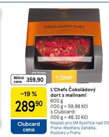 Aktuální slevu na L'Chefs Čokoládový dort s malinami, 600 g zjistíte jednoduše nastavením Strážce slev .