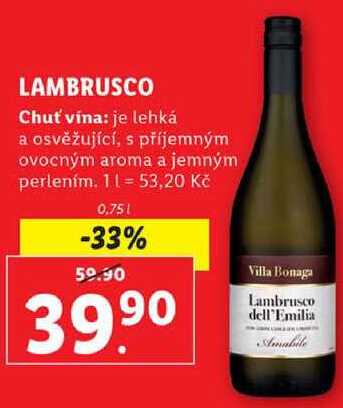 Aktuální slevu na LAMBRUSCO, 0,75 l zjistíte jednoduše nastavením Strážce slev .