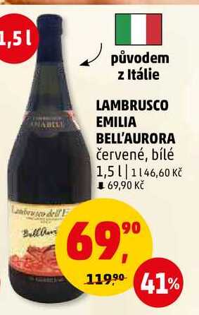 Aktuální slevu na LAMBRUSCO EMILIA BELL'AURORA červené, bílé, 1,5 l zjistíte jednoduše nastavením Strážce slev .