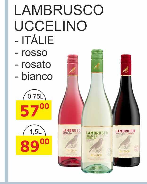 Aktuální slevu na LAMBRUSCO UCCELINO - ITÁLIE 1,5L zjistíte jednoduše nastavením Strážce slev .